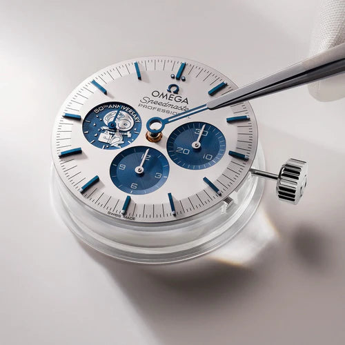 Completan este diseño de colección los grabados conmemorativos de la misión Apolo 13, un bisel de cerámica azul [ZrO2] con escala taquimétrica en esmalte blanco y la potencia del calibre OMEGA Co-Axial Master Chronometer 3861.