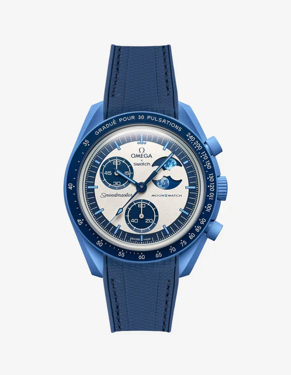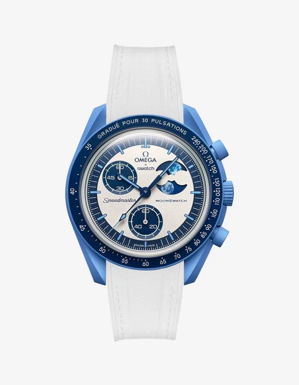 Al igual que la luna azul que lo inspiró, este modelo hizo una aparición efímera en la Colección MoonSwatch Bioceramic, aportando un encanto místico y único. 🌌
