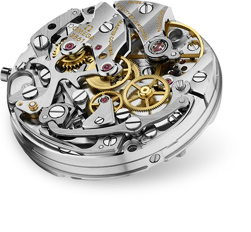 Movimiento cronógrafo de cuerda manual con escape Co-Axial. Certificado Master Chronometer y aprobado por METAS, resistente a campos magnéticos de hasta 15.000 gauss. Espiral de silicio y volante libre. Acabado rodiado, puentes con decoraciones rectas tipo “Côtes de Genève”.
